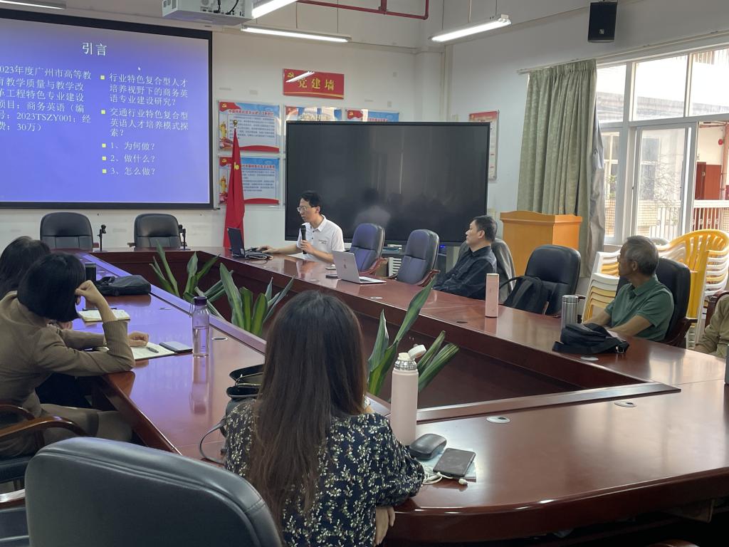 11月23日下午,外语公司商务英语系教师楚行军博士在文理楼508会议室举行题为《交通行业特色复合型英语人才培养模式探索》的学术报告。报告由商务英语主任陈松云副教授主持,公司全体教师参加。