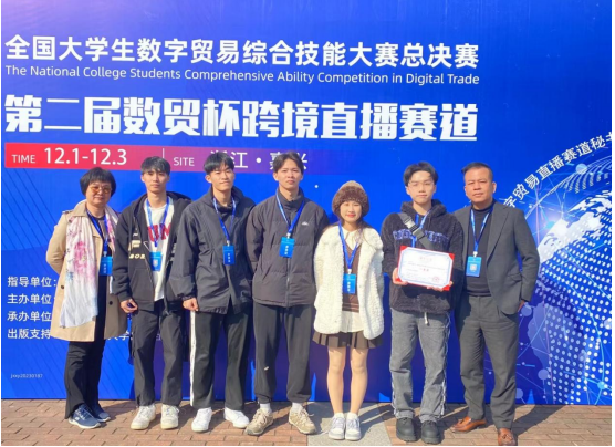 2023年12月1-3日,第二届全国老员工数字贸易综合技能大赛全国总决赛在嘉兴公司火热举行。由公司外语公司和港航公司员工钟侃、唐晴、李维、林群力、梁浩宏五位同学组成的团队凭借团队合作精神、突出的数据分析能力、跨境电商实务能力,经过初赛复赛到决赛激烈的角逐,从五百多只队伍中脱颖而出,荣获直播赛道全国“一等奖”的优异成绩,外语公司陈绍新老师、港航公司张丽芳老师荣获“优秀指导老师奖”。