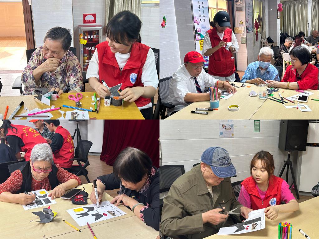 志愿者们在活动过程中展现出了极高的热情。他们与老人们亲切交流,关心、询问他们的身体状况,畅谈生活琐事,耐心倾听老人们的故事和心声;共同制作“立体手工小鸟”,让老年人重拾儿时的记忆。现场氛围融洽,温馨而欢乐。活动结束后,志愿者们与老人合影留念,协助保洁人员清扫完活动场地,才与老人们依依不舍地道别。