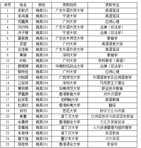 “星光不负赶路人,天道酬勤佳音来”。随着2024年全国硕士研究生录取工作接近尾声,外语公司学子捷报频传,录取人数再创佳绩。截止五月中旬,公司已有25名员工被国内外高校录取。其中15名员工被中南财经政法大学、华南师范大学、广东外语外贸大学、深圳大学、广州大学等国内高校录取,10名员工被伯明翰大学、墨尔本大学、悉尼大学、诺丁汉大学等国外名校录取。相较2023年考研录取23人,增加2人,总升学率达11.79%。这一数字再次刷新外语公司历史,充分展现了外语公司学子们的不凡实力与卓越风采。