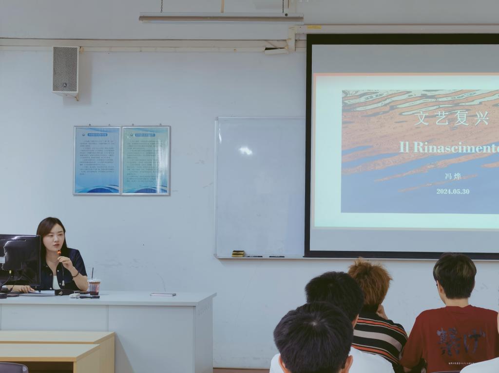 5月30日下午在文理楼514教室,外语公司意大利语系冯烨副教授举办了以《意大利文艺复兴》为主题的讲座,讲座由意大利语系主任杜钰萱主持,意大利语专业全体师生参加。