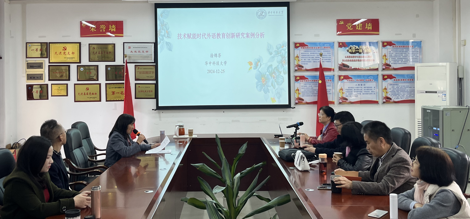 在讨论环节,徐锦芬教授与在场教师就课题选择、教学科研等问题进行了深入的交流和讨论,耐心细致地解答了教师们的问题,现场气氛热烈,与会教师纷纷表示受益匪浅。